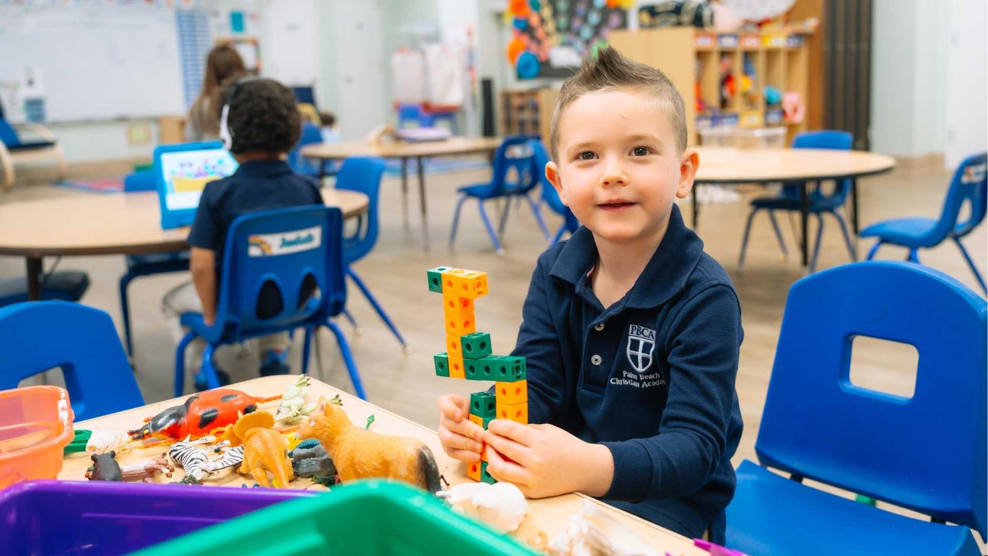 Your child will master walking up and down stairs, turning pages, and even pedaling a tricycle. Their language will blossom into 3–4‑word sentences and simple storytelling, while social‑emotional growth shows in sharing affection, and adapting to routines. Cognitively, they’ll complete puzzles, sort objects, and grasp concepts of sameness and difference. Spiritually, they’ll participate in prayer, and experience weekly chapel and Bible lessons.
