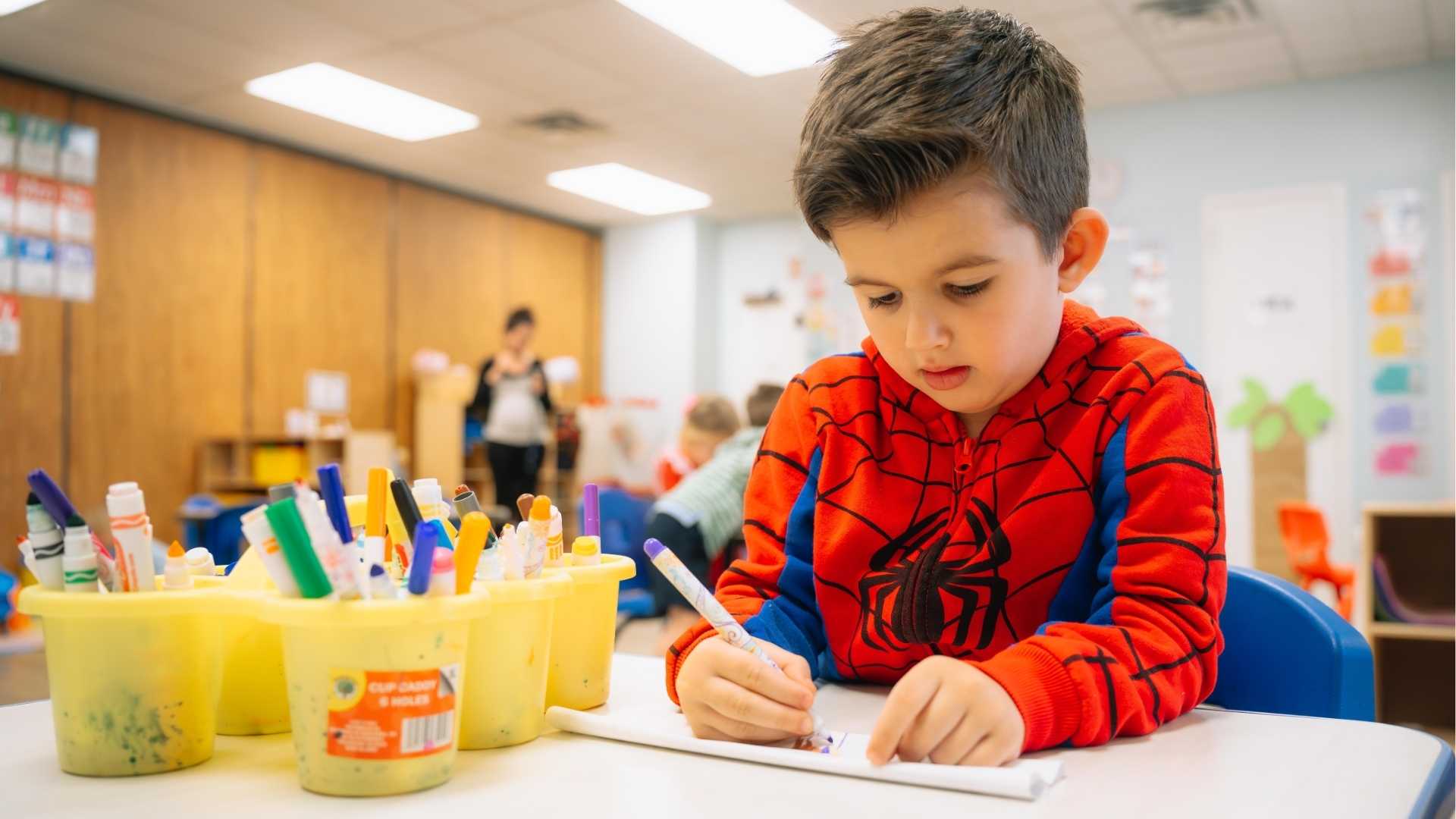 Whole‑ and small‑group activities, arts & crafts, pre‑writing exercises, and learning centers, build fine‑motor skills and foster hands‑on discovery.